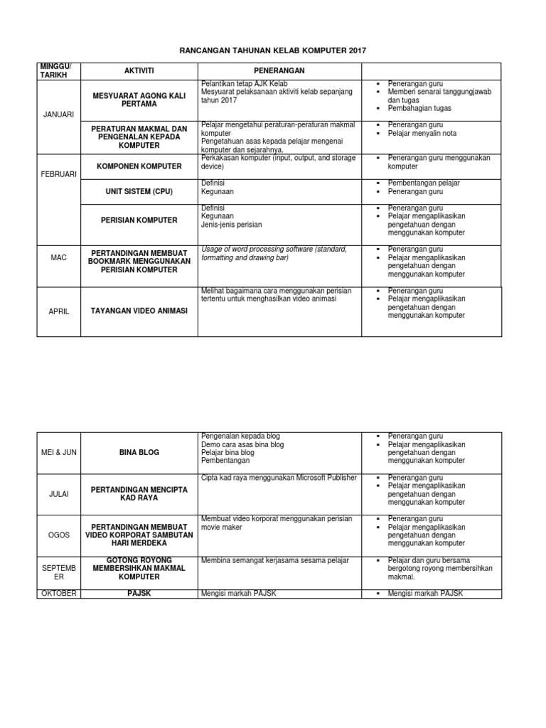 Rancangan Aktiviti Tahunan Kelab Komputer Pdf