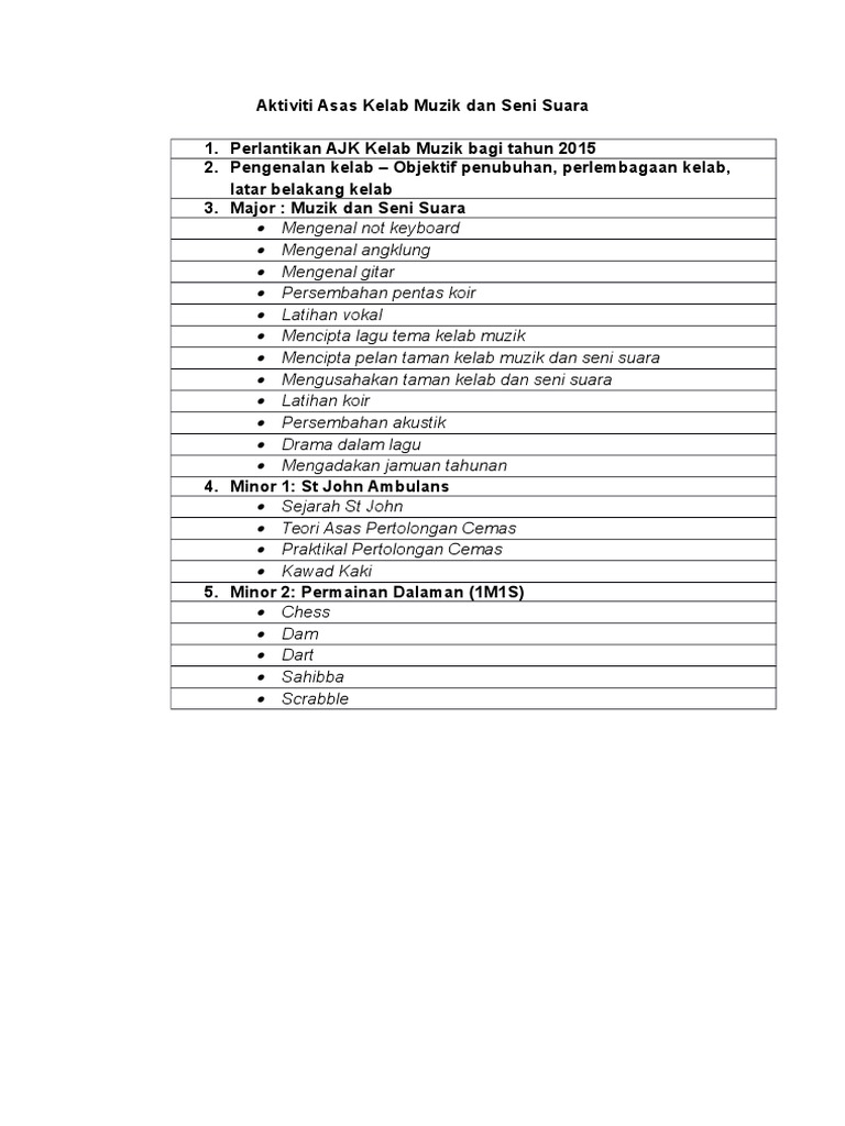 Aktiviti Asas Kelab Muzik Dan Seni Suara Pdf