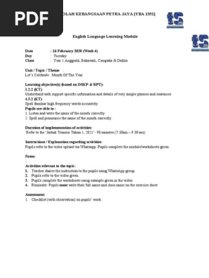 English Module Year 1 Week 4 2021 Transition Pdf
