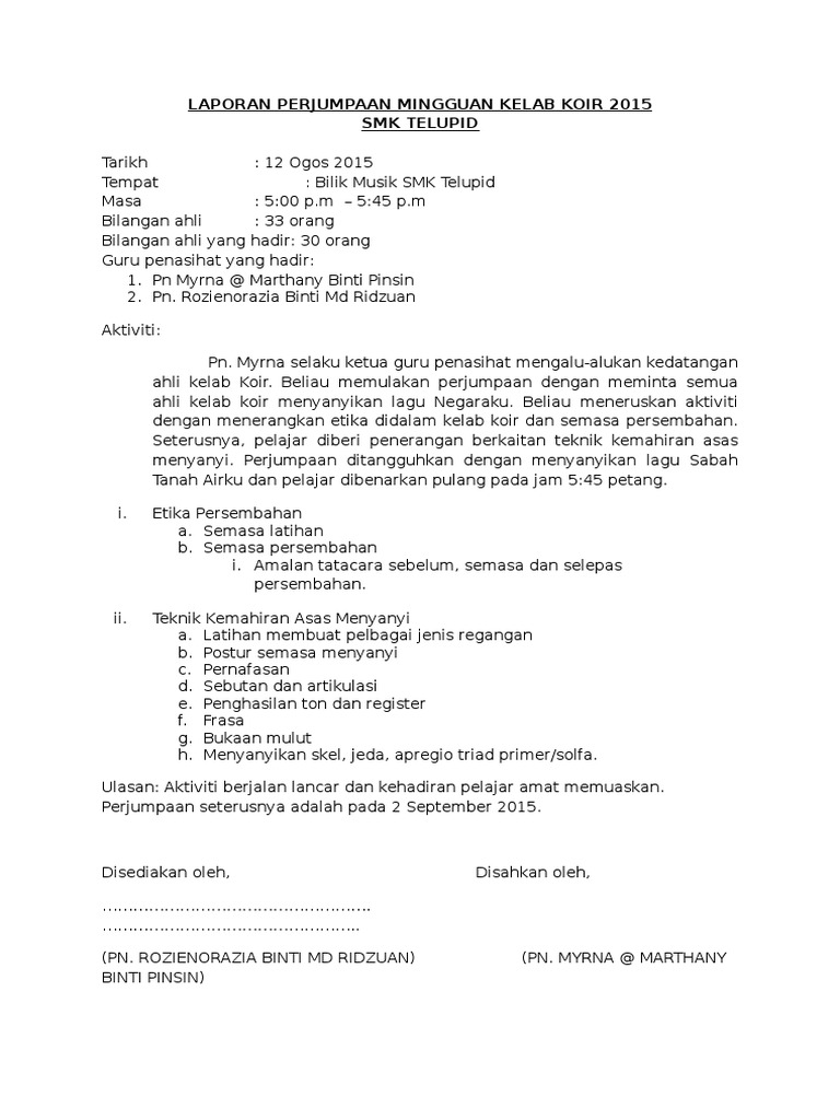 Laporan Perjumpaan Mingguan Kelab Koir Pdf