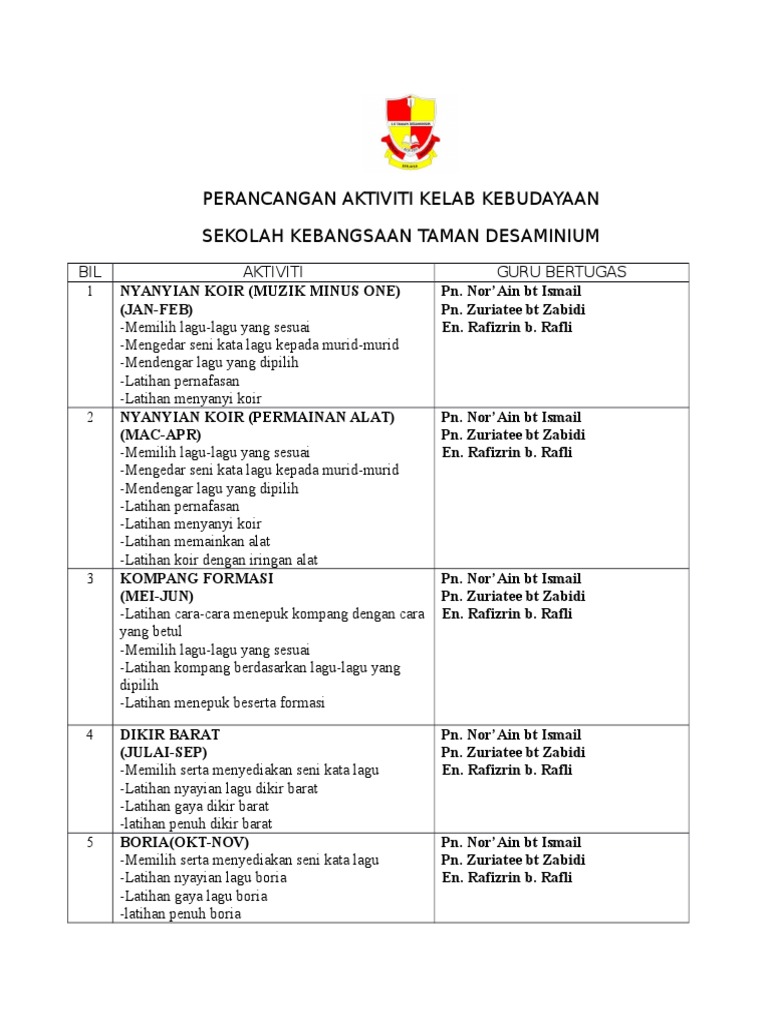 Perancangan Aktiviti Kelab Kebudayaan Pdf