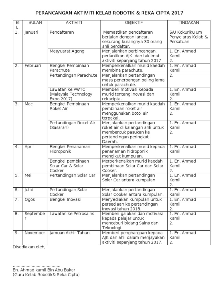 Perancangan Aktiviti Kelab Robotik Reka Cipta 2017 Pdf