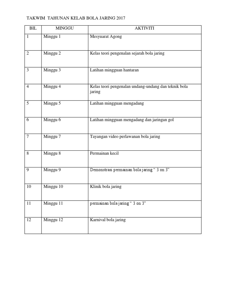 Takwim Tahunan Kelab Bola Jaring Pdf
