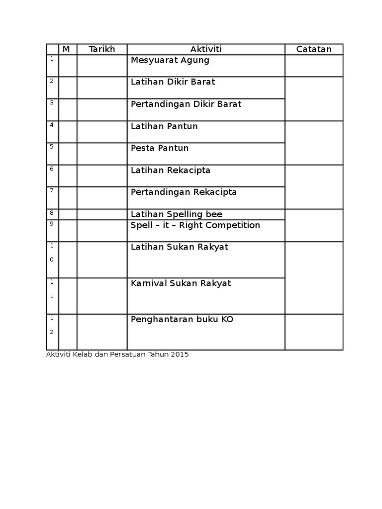 Kelab dan persatuan bermaksud sesuatu entiti kumpulan yang berstruktur berpelembagaan berperaturan dan berkepimpinan yang dianggotai oleh murid-murid sekolah yang mempunyai minat kegemaran hasrat dan kecenderungan yang sama serta bertujuan untuk saling bekerjasama bantu membantu dan berkongsi sumber dalam melaksanakan aktiviti dan. LAPORAN AKTIVITI 1PENGISIAN PROGRAM 1. Buku rekod aktiviti kokurikullum pelajar.