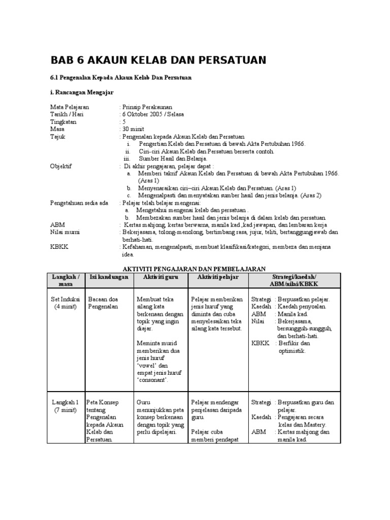 Download Full PDF Package. AKAUN KELAB DAN PERSATUAN PENGENALAN OBJEKTIF PEMBELAJARAN. HERE are many translated example sentences containing AKAUN BANK KELAB - malay-english translations and search engine for malay translations.