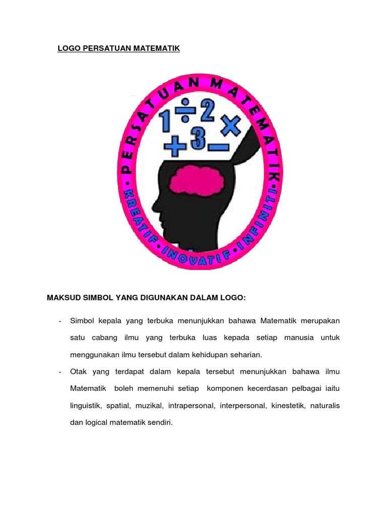 Contoh logo kelab sains matematik. 48 Contoh Logo dengan Simbol Tersembunyi httpayuprintcoid48-contoh-logo-dengan-simbol-tersembunyi. Persatuan Sains Dan Matematik Perancangan Aktiviti Tahun 2017. Pada 13 Oktober 2014 Isnin ahli- ahli kelab Sains dan Matematik telah dijemput oleh syarikat BASF Malaysia Sdn Bhd bagi menghadiri Program Kids Lab 2014 yang diadakan di Empire Gallery Shopping Mall.