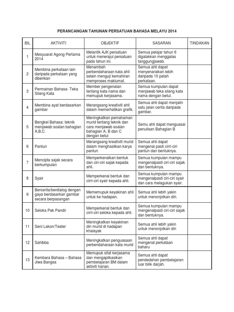 Aktiviti kelab bahasa sekolah rendah. RANCANGAN AKTIVITI TAHUNAN KELAB RUKUNEGARA 2018. Perancangan Aktiviti Tahunan Panitia Bahasa Melayu Sekolah Rendah aktivitisenang. Tayangan cerita bahasa inggeris 2.