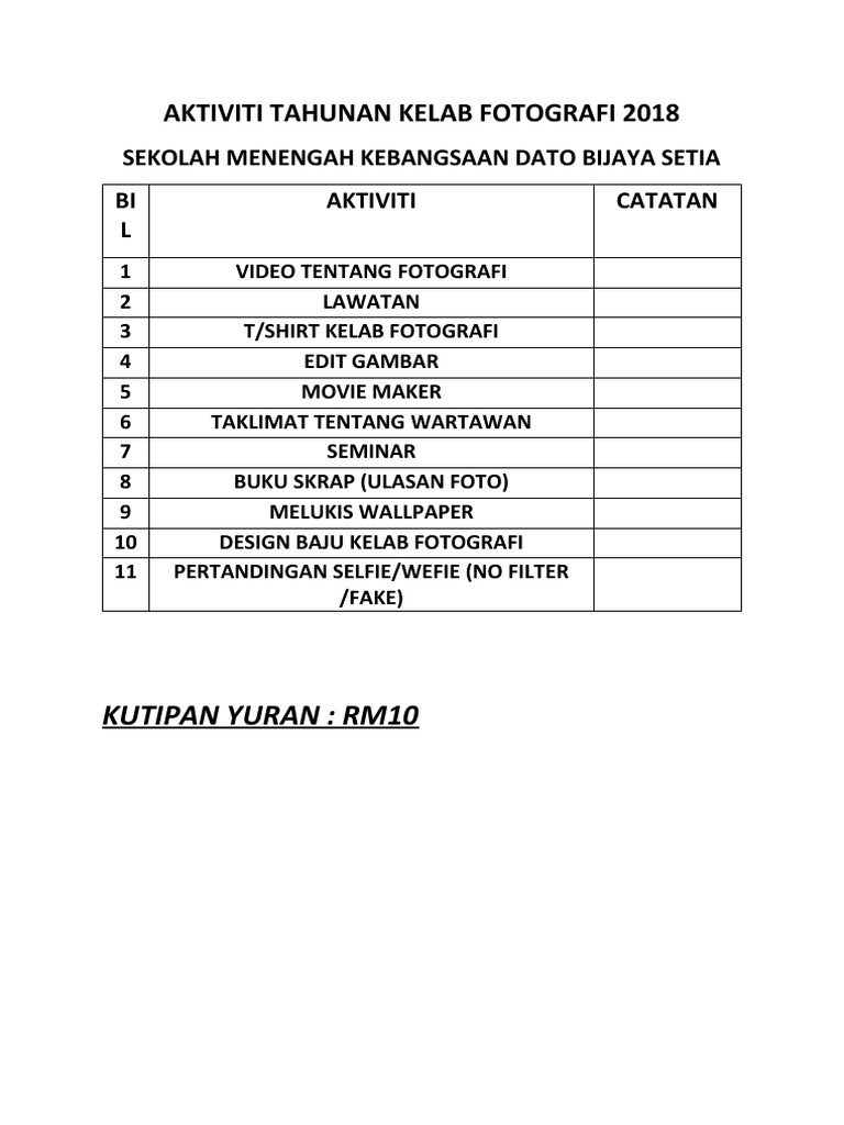 Rancangan Tahunan Kelab Fotografi Pdf