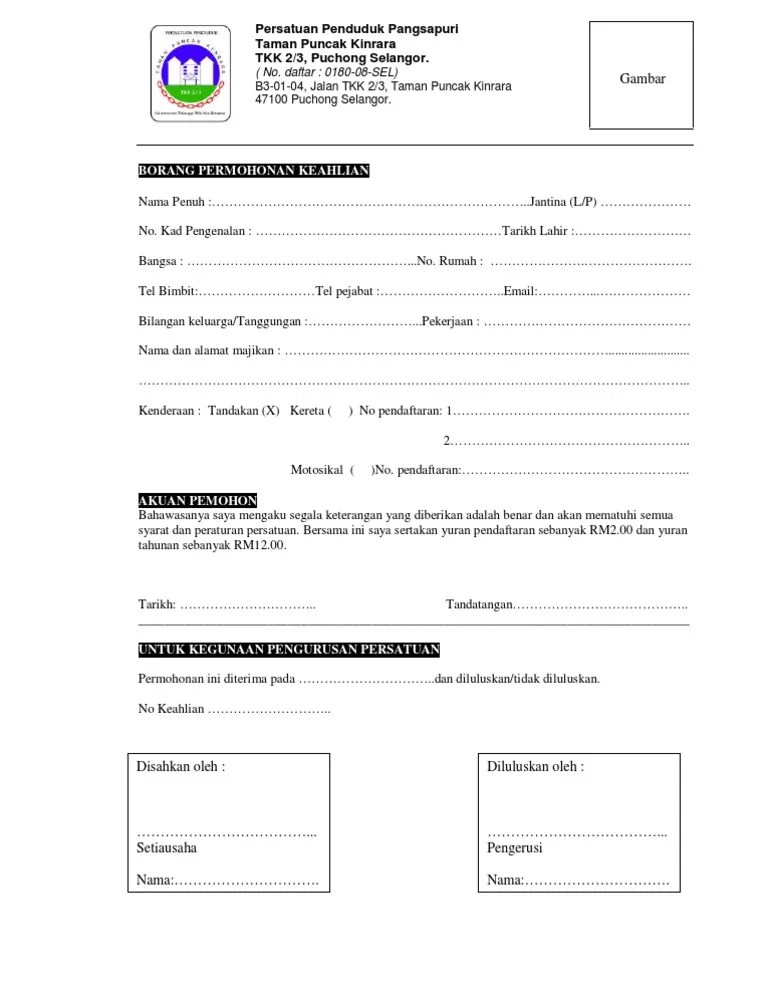Mengumpul anak-anak dikalangan Ahli Kelab disamping mengeratkan hubungan silaturahim sesama ahli. Moshims contoh borang pendaftaran ahli persatuan belia. View BORANG-PENUBUHAN-KELABdoc from CE 165 at The University of Sydney.