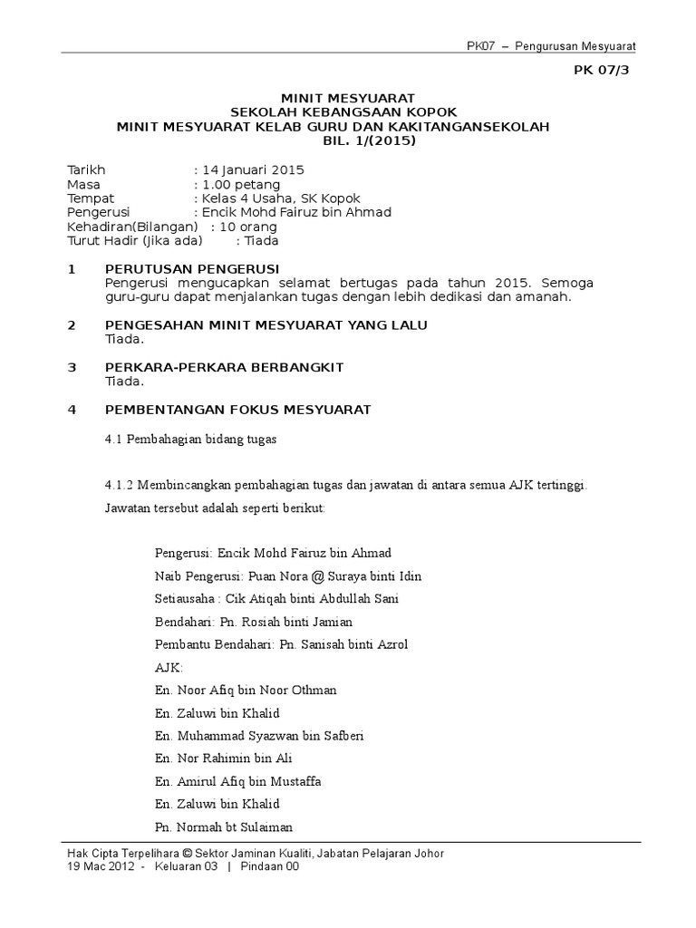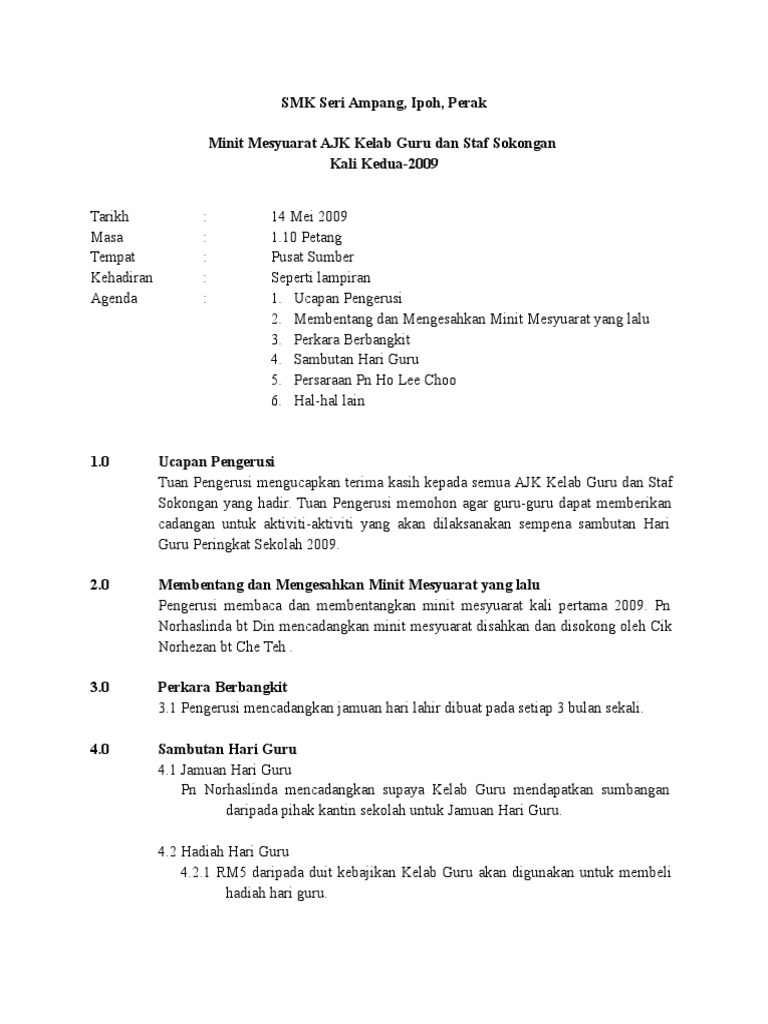 Contoh Minit Mesyuarat Kelab Guru Skbg Pdf