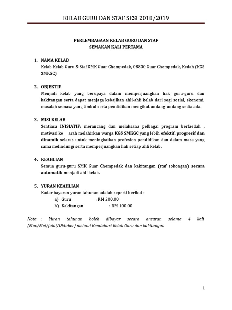 Perlembagaan Kelab Guru Dan Staf Pdf