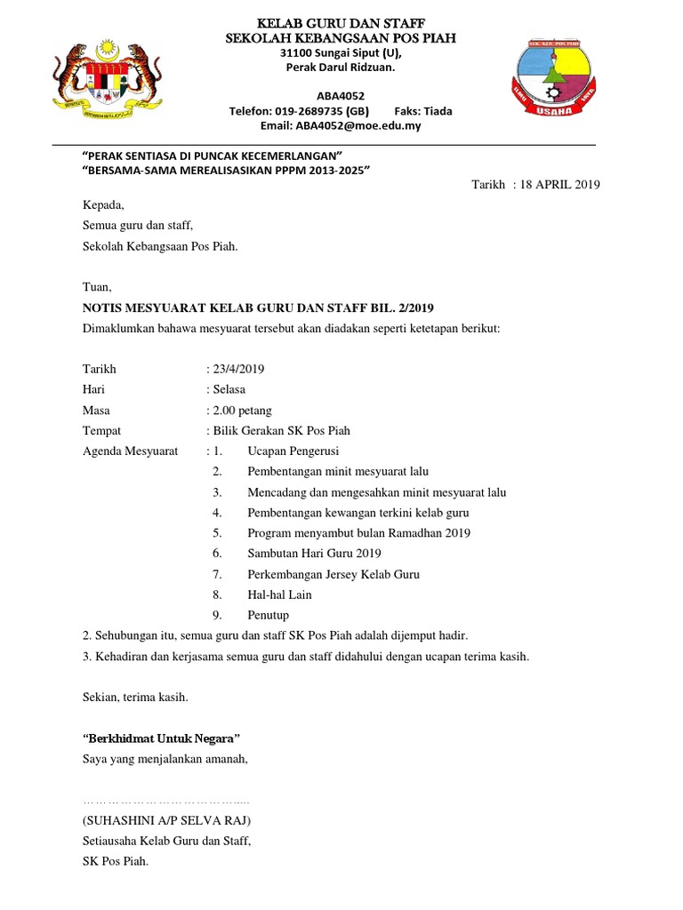 Surat Panggilan Mesyuarat Kelab Guru 2 Pdf