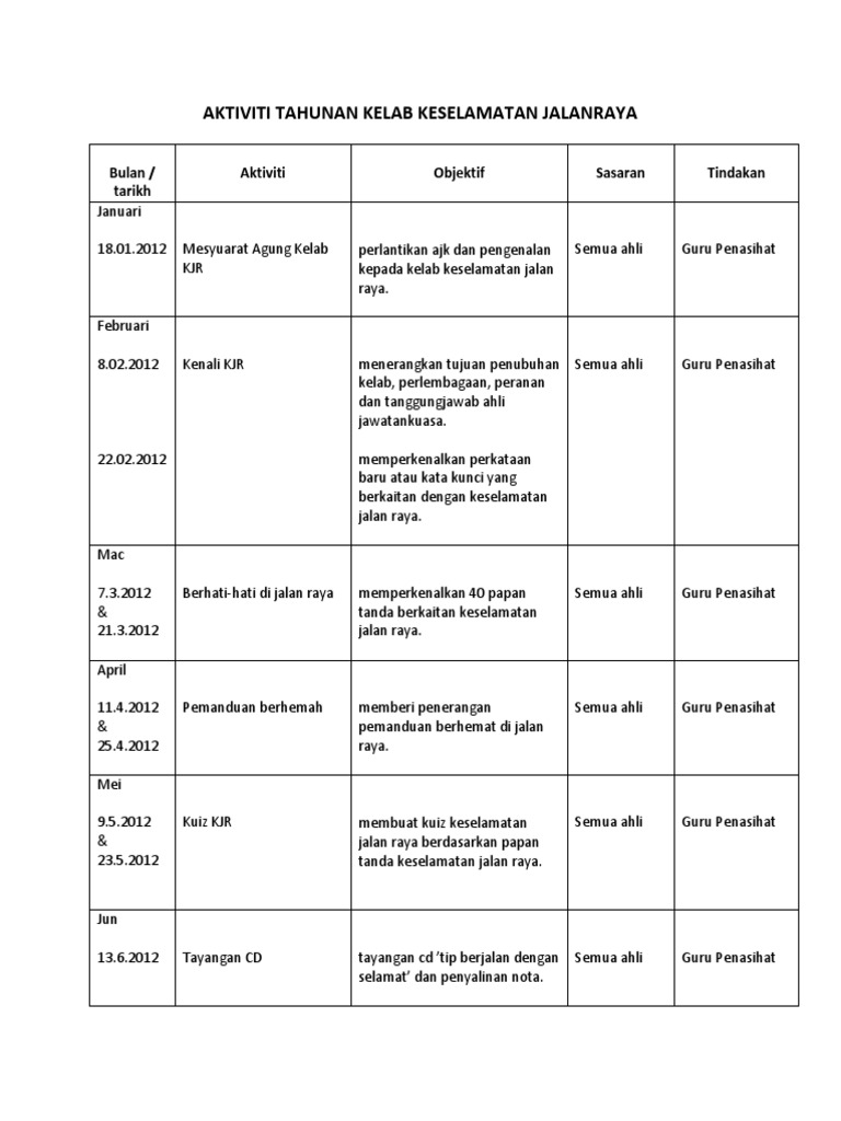 Aktiviti Tahunan Kelab Keselamatan Jalanraya Pdf