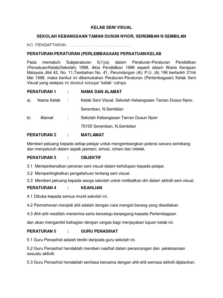 Perlembagaan Pendidikan Kelab Seni Visual Pdf