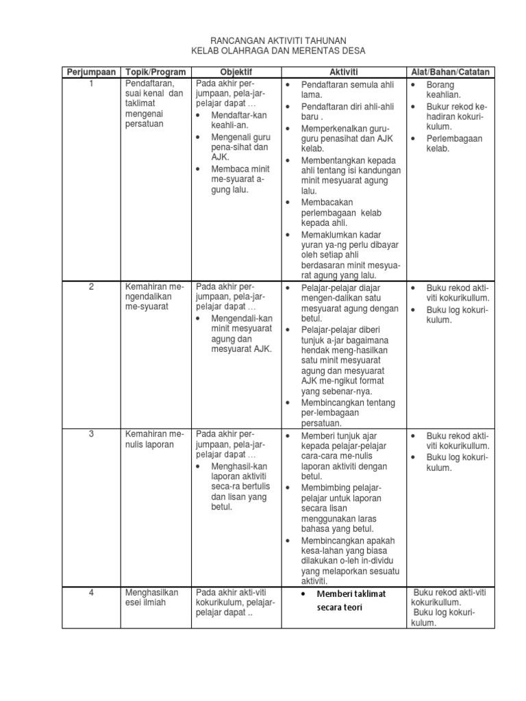 Rancangan Aktiviti Tahunan Persatuan Bahasa Pdf
