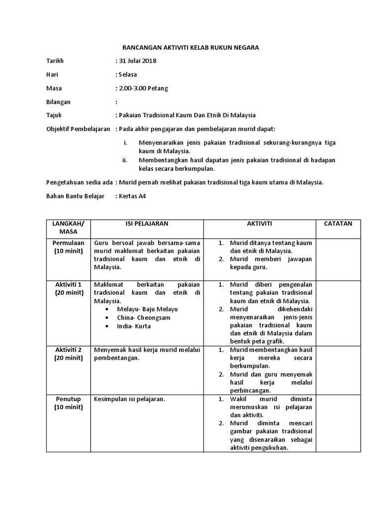 Rancangan Tahunan Kelab Rukun Negara 2018 Pdf. 0100 PM - 0130 PM LOKASI. Rancangan Aktiviti Tahunan Persatuan Bahasa Inggeris.