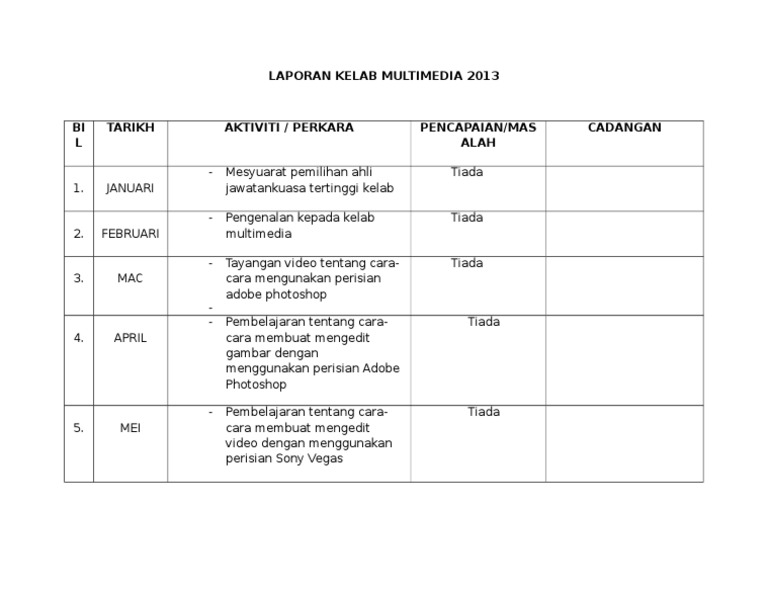 Contoh laporan aktiviti kelab fotografi. Multimedia merupakan proses komunikasi interaktif berasaskan teknologi komputer yang menggabungkan penggunaan pelbagai unsur media digital seperti teks audio grafik animasi dan video untuk menyampaikan maklumat. 72 Kelab boleh memperolehi kewangan melalui aktiviti kelab.