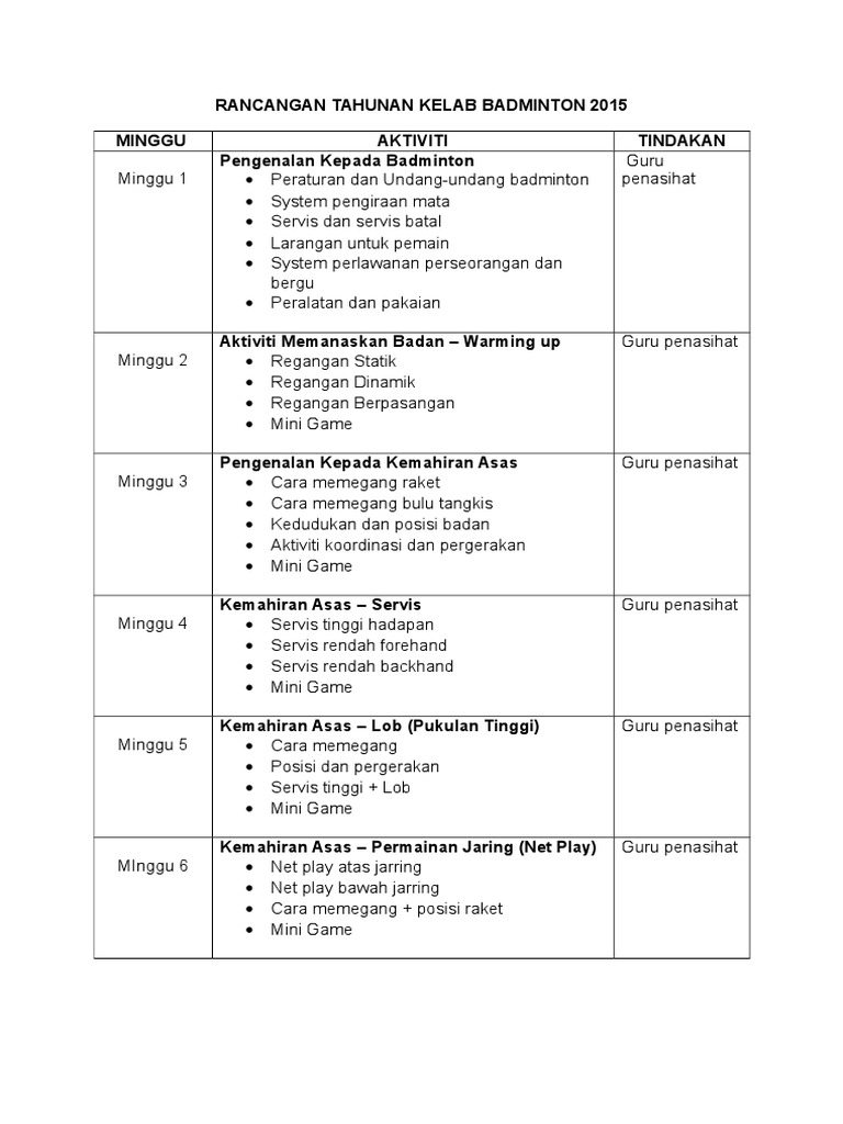 Rancangan Tahunan Kelab Badminton 2015 Pdf