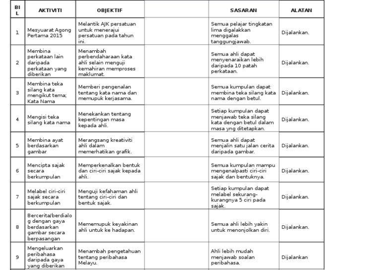 Perancangan Aktiviti Persatuan Bahasa Melayu Pdf