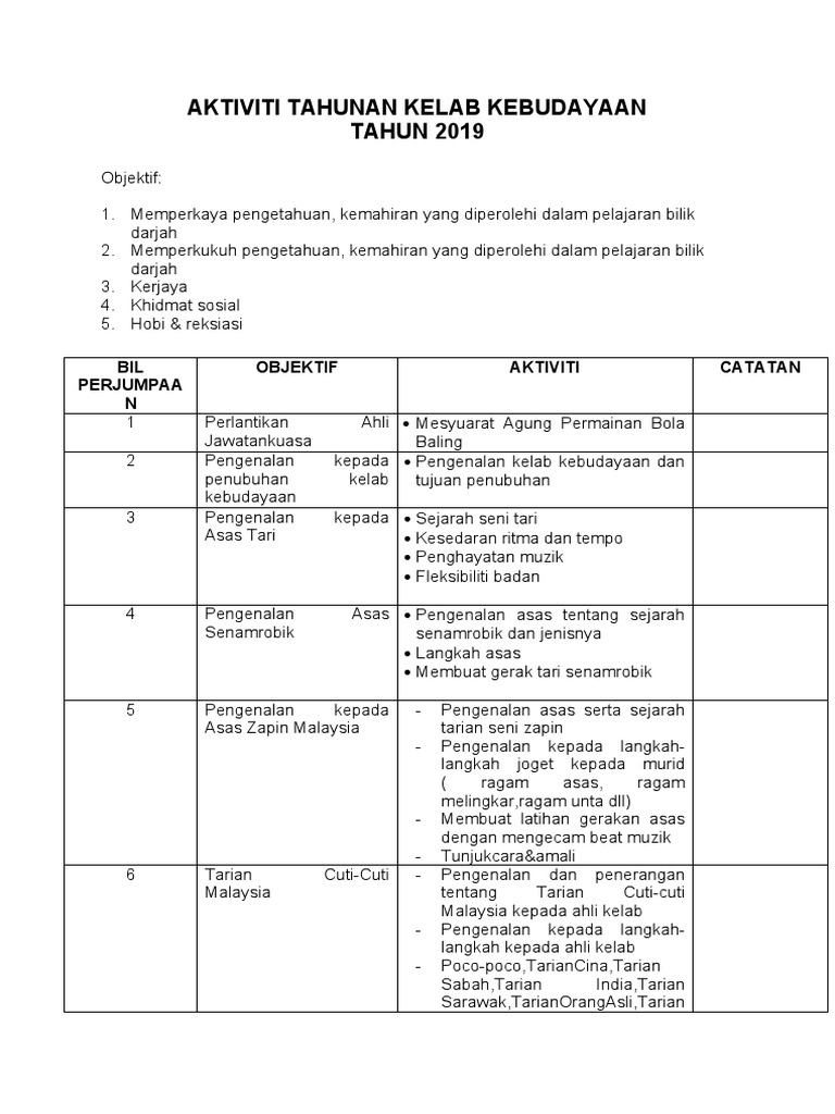 Aktiviti Tahunan Kelab Kebudayaan Pdf
