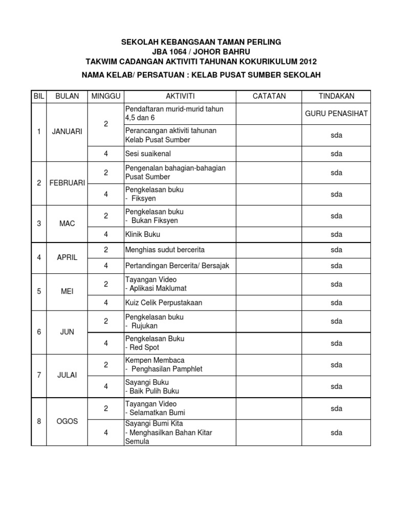 Contoh Cadangan Aktiviti Tahunan Pdf
