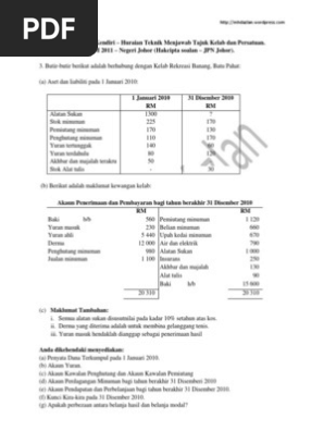 Cg Narzuki September 11 2009 at 635 pm. Akaun Belum Terima minuman - aset 225 170. 1 Julai 2011 30 Jun 2012 RM Premis 25 000 25 000 Lengkapan 3 000 2 956 Yuran tertunggak 430 560 Yuran.