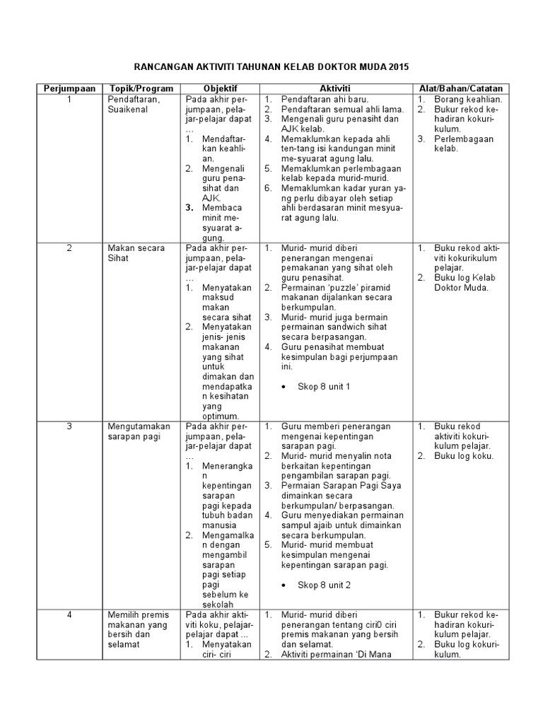 Rancangan Tahunan Kelab Doktor Muda 2015 Pdf