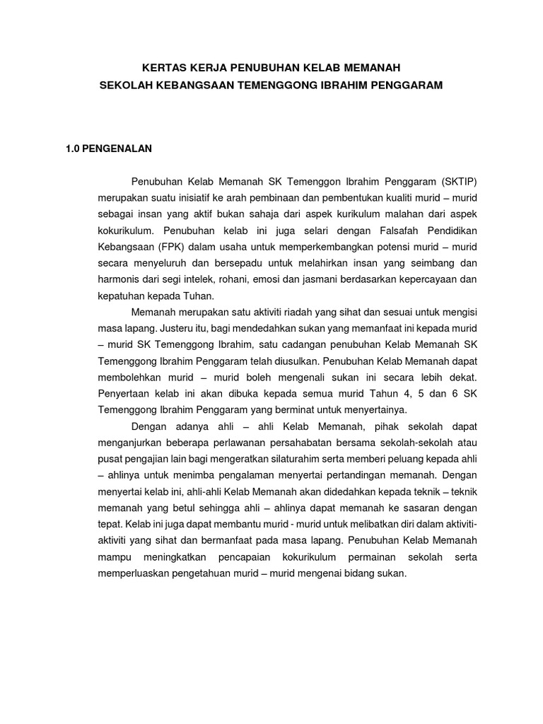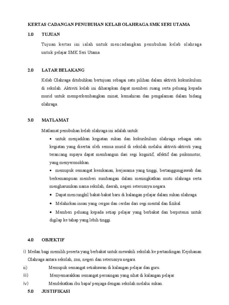 Kertas Cadangan Penubuhan Kelab Olahraga Smk Seri Utama Pdf