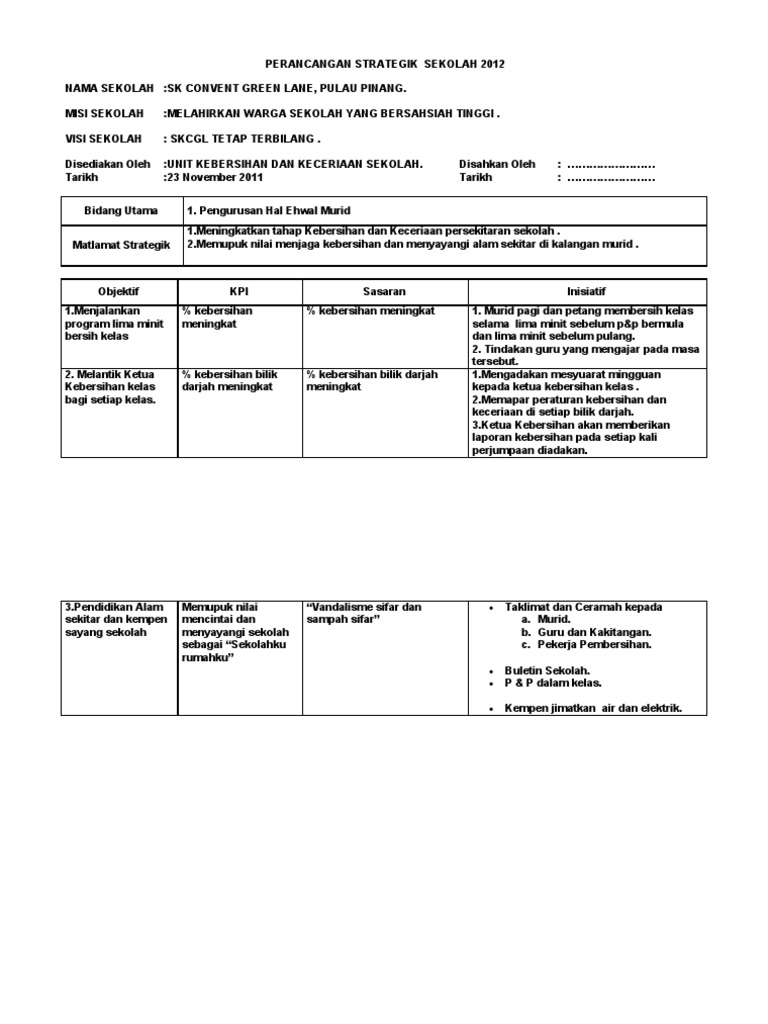 Plan Strategik Unit Kebersihan Dan Keceriaan Sekolah 2011 Pdf